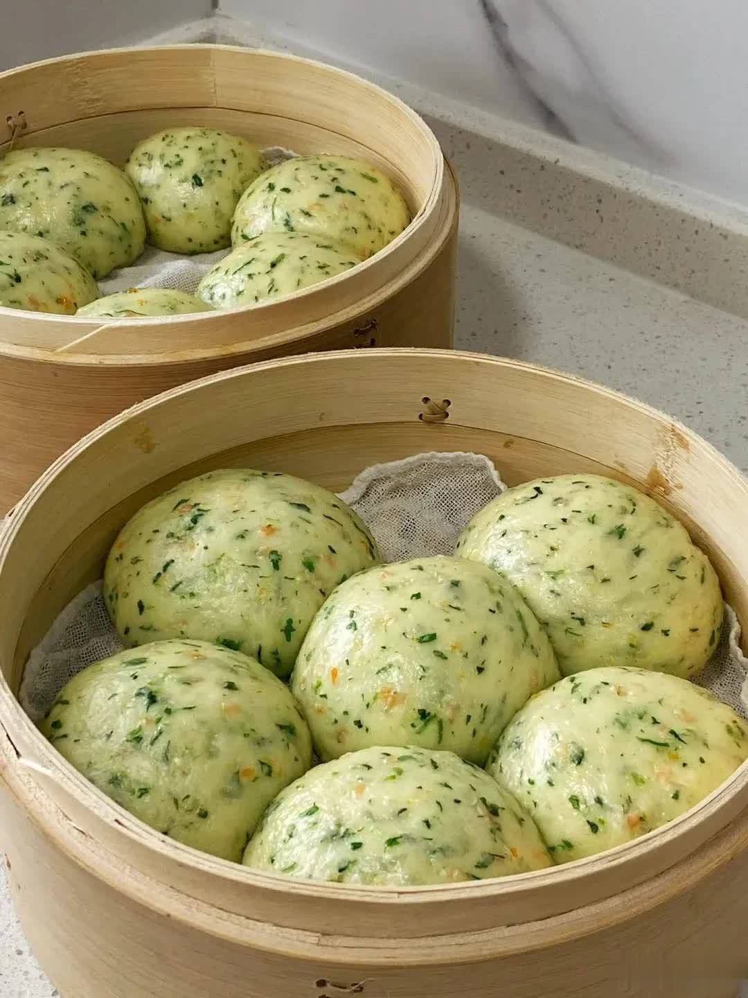 荠菜的惩处——焯水后挤干切碎,揉进面团或当作馅料。蒸制后,荠菜特有的幽香浸透面坯,每一口齐能吃到细碎的菜末,带着微微的颗粒感和野菜特有的鲜气。馒头本人松软喧腾,咬下去先是面香,接着荠菜的清鲜渐渐散开,越嚼越有滋味,比普通馒头多了一层春天的脉络感。